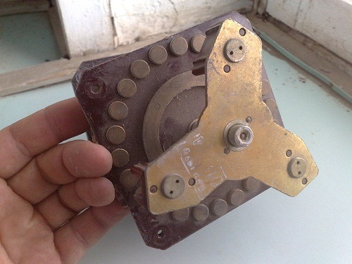 Какая жизнь всё таки сложная. Ну не знаю... Может есть простой выход. Слабое реле включает сильное промышленное реле, через здоровенный транзистор. И все дела. Только заказать надо. == ВЫСОКОВОЛЬТНАЯ ТЕХНИКА ЭЛЕКТРОЭНЕРГЕТИЧЕСКИХ СИСТЕМ Мне такое пришло в голову, это уже извращенство конечно, но для прикола напишу: Когда магнит возвращается взад, он нажимает на переключатель. И меняет полярность. Что к данной схеме, кажется подходит. (Надеюсь пробки не вылетят, проводка не сгорит). А спереди шаговый двигатель крутит такую хрень: http://4put.ru/pictures/max/120/371012.jpg Или что-то похожее. И поочерёдно замыкает контакты, своим вращением. (Скорость вращения, определяет частоту обратно-постпательных движений). Тоесть стукнув куда ему надо, магнит замирает в этом положении, прижав ротор электрополем к цели. И ждёт пока медленно ползущий двигатель, с редуктором, переключит его на движение назад. Потом идёт назад, и тут же, "споткнувшись" о переключатель, снова идёт вперёд, и снова замирает.