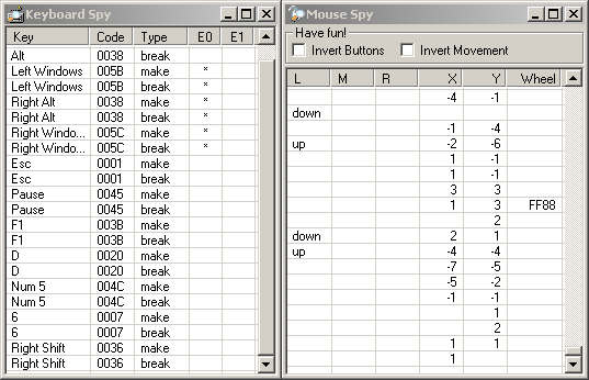 Рис. 16-1. KbdSpy и MouSpy в действии.