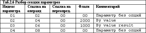 Итак, перед нами 4 параметра. За счет ссылок на операнды в таблице операндов становится возможным определить формат этих параметров.