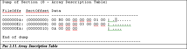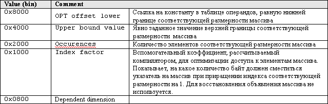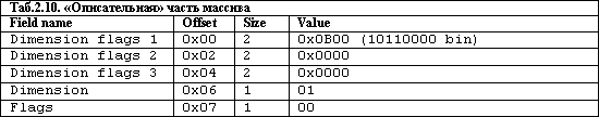 По значению поля Dimension заключаем, что перед нами одномерный массив (косвенно на это же указывают нулевые значения полей Dimension flags 2 и Dimension flags 3).