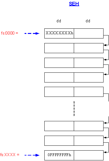 Каждый элемент имеет размер в два двойных слова. SEH имеет приблизительно такой вид: