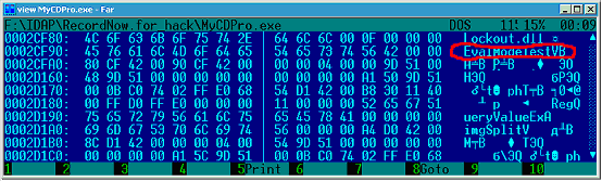 Хорошо, а если бы разработчик защищенного приложения, не поленился бы воткнуть проверку на успешность загрузки функции EvalModeTestVB и при ее отсутствии немотивированно прекращал свою работу? Смогли бы мы тогда узнать: какие функции библиотеки lockout используется, а какие нет? Уговорили! Взломаем программу другим путем! Погоняем курсор к MyCDPro.exe и, нажав на