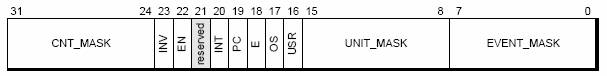 В плане мониторинга производительности процессоры Opteron/Athlon-64 частично совместимы с Athlon XP/Duron. Частично, потому что форматы регистров и номера MSR не отличаются, но списки событий разные. То есть программа, работающая с Athlon, не будет shutdown-ить новый процессор, но не факт что счетчик будет считать то, что вам надо. Формат управляющих регистров счетчика: