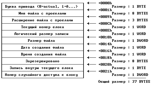 Есть два вида FCB: обычные и расширенные. Здесь приводится структура обычного FCB.
