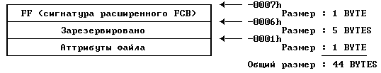 Если FCB расширенные, все вышеуказанные смещения сдвигаются на семь байтов, а первые 7 байтов выглядят следующим образом: