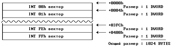 xor ax,ax mov ds,ax lds dx,ds:[21h*4]Почему мы очищаем DS? Потому что IVT находится от 0000:0000 и выше. Эти манипуляции (без использования DOS) - это прямой путь для получения и помещения векторов прерываения. Хорошо, все это и больше изложено в главе о резидентных вирусах. Эй... Я забыл привести немного графики