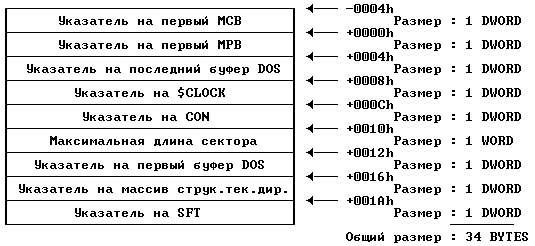 С помощью DIB мы можем получить доступ к очень важным структурам, которые нельзя достигнуть другим образом. Местоположение этих структур не фиксировано. Мы должны использовать функцию 52h прерывания 21h. Это недокументированная функция DOS. Вызвав эту функцию, мы получим доступ к DIB в ES:BX.