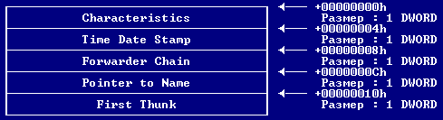 Далее следует структура таблицы импортов.