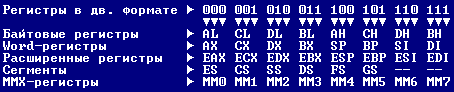 F2 -> 11 110 010 F6 -> 11 110 110Видите, что изменилось? Последние три бита, верно? Ок, теперь переходим к регистрам. Как вы поняли, изменяются три последних бита согласно используемому регистру. Итак...