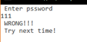 #include <iostream> #include <stdio.h> #include <process.h> #include <conio.h> using namespace std; void main() { cout << " Enter pssword " << endl; int pass; cin >> pass; if (pass==999) //пароль 999 { cout << " OKEY!!! ;) " << endl; getch(); } else { cout << " WRONG!!! " << endl; cout << " Try next time! " << endl; getch(); exit(0); } cout << " Your registration allright! " << endl; cout << " Press any key! " << endl; getch(); }