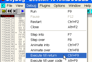 Выберем EXECUTE TILL RETURN, чтобы она выполнилась до инструкции RET.