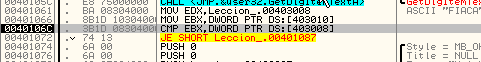 Открываем «LECCION 13 HARDCODED 2» в OllyDbg.