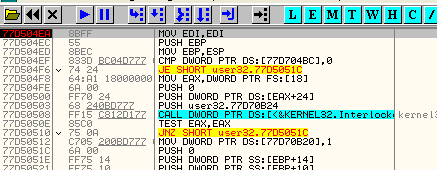 Нажимаем на F7 и оказываемся на EBX. MOV EBX, DWORD PTR DS: [40300C] перемещает только четыре байта.