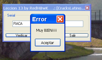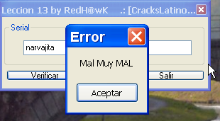 В главе 14 рассмотрим два более сложных примера жёстко заданных серийных номеров, но перед этим нужно потренироваться на более простых примерах, так что попрактикуйтесь на третьем крэкми, который я вам дал. © Рикардо Нарваха, пер. Aquila