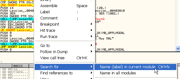 Сначала посмотрим, какие API-функции используются, с помощью клика правой кнопкой мыши и выбора SEARCH FOR- NAME (LABEL) IN CURRENT MODULE.