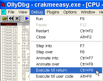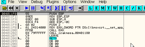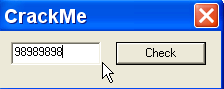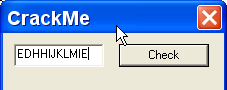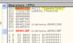 В следующем случае уже не производится прямого сравнения серийного номера с введённой строкой. Откроем крэкми crackmeeasy в OllyDbg.