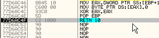 На следующей строке происходит сравнение 0A с содержимым [EBX-10], то есть с нулём.