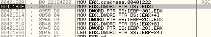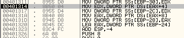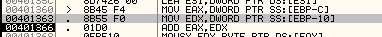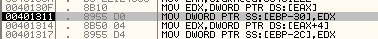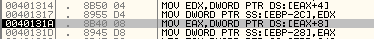 На следующей строке байты, находящиеся в EDX, перемещаются в [EBP-30].