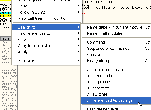 Выполнение SEARCH FOR – ALL REFERENCED TEXT STRINGS даёт нам список строк, которые использует крэкми.