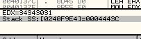 Выполнение строки с помощью F7 перемещает их в EDX (они всегда перемещаются в регистр в порядке, обратном тому, как они располагались в памяти).