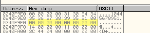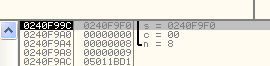 В стеке находятся вышеуказанные параметры: область памяти по адресу 240f9f0 продолжительностью в 8 байт должна быть заполнена нулями.