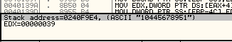 В данном случае первый байт неверного серийного номера переместится в EDX и выполнение строки покажет, что EDX стал равным 39.