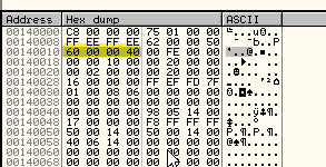 В дампе видим нужную область, помните, что её местонахождение у вас может отличаться, более того, оно меняется каждый раз, когда программа перезапускается.