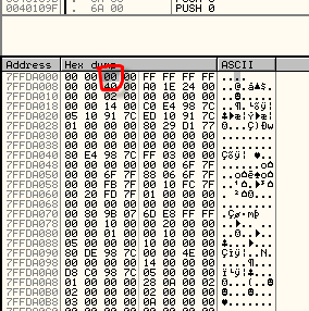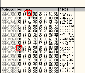 Разумеется, мы помним, что этот байт заполняется API-функцией IsDebuggerPresent, а NTGlobalFlag находится по соседству - надо прибавить 68 к адресу, который находился в EBX, в моём случае EBX содержал 7ffda000, прибавляем 68 и получается 7ffda068.