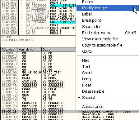 То есть, значение этого указателя (1000) надо прибавить к 400000, и получим адрес точки входа программы. Если хотим изменить его, например на 2000, нажимаем на правую кнопку мыши.