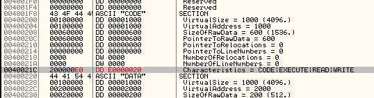 У каждой секции есть начальные настройки доступа, хранящиеся в заголовоке, до того как программа не выполнит какую-нибудь API-функцию, например VirtualProtect, позволяющую изменить настройки доступа, заданные изначально, во время выполнения.