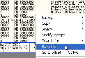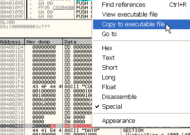 Затем, чтобы сохранить изменения в файле, нажимаем правую кнопку мыши – COPY TO EXECUTABLE, а в возникшем окне ещё раз правая кнопка мыши и SAVE FILE. Сейчас этого делать не будем, я просто хотел, чтобы вы знали об этой возможности.