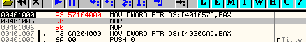 Видим, что исключения не возникло и значение EAX прекрасно сохранилось по адресу 401057.