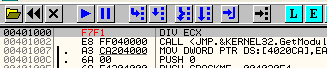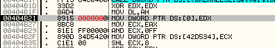 Здесь происходит деление ECX на EAX, и если последний равен нулю, то будет вызвано исключение.