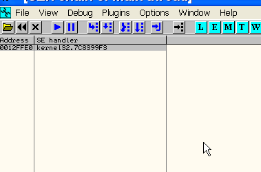 Видим, что fs:[0] равно 12ffe0. Можем посмотреть, какую информацию предоставляет по этому поводу OllyDbg.