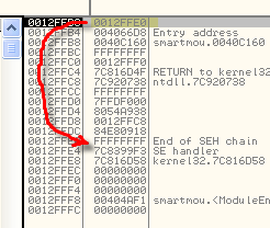SEH CHAIN означает, что это цепочка. Сохраняемое значение указывает на предыдущий обработчик, являющийся на данный момент активным.