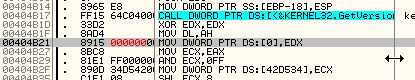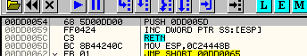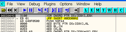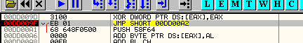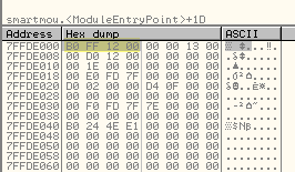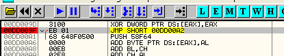 Следующая строка перемещает действительное значение fs : [0] в EAX. Посмотрим, чему равен FS:[0] через DUMP.