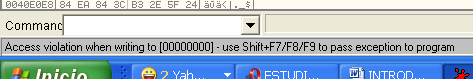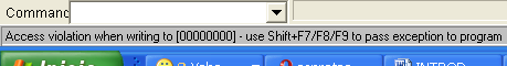 Как видим, OllyDbg всегда нам всё рассказывает, хе-хе, нажимаем SHIFT+F9, чтобы продолжить выполнение программы.