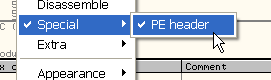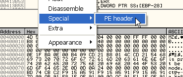 Теперь меняем режим «Special - PE HEADER» согласно процедуре, которую делали в крэкми. Спускаемся и ищем секцию кода.