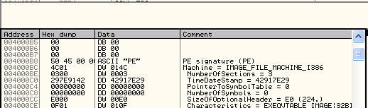 Ок, сейчас нам нужно найти заголовок, который в данном случае не будет располагаться там, где обычно. Посмотрим, чему равна база образа файла, то есть адрес, откуда он начинается. Нажимаем кнопку E.