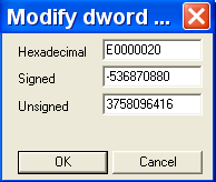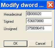 Меняем на E0000020, чтобы установить разрешение на запись.