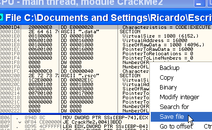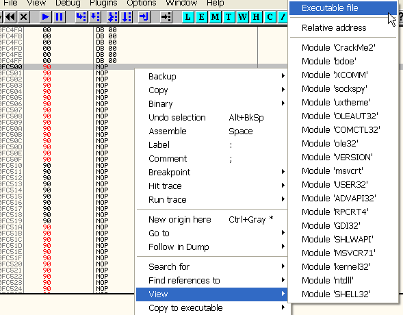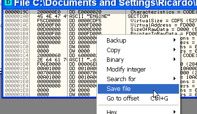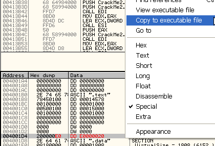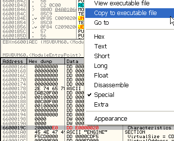 Нажмите правую кнопку мыши – VIEW EXECUTABLE, чтобы посмотреть эту область и подготовиться к сохранению изменений в exe-файле.