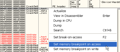 Устанавливаем BPM ON ACCESS (которые исчезли после выхода из отладчика) на секцию CODE.