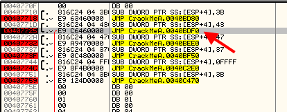 Сейчас останавливаемся на последнем переход, который ведёт в 40c470, но нага ещё нет.