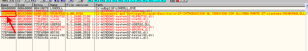 В колонке «Base» мы находим базу образа DLL, которая в моём случае равна 66000000 и может отличаться на вашей машине.