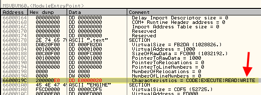 Здесь видим характеристики. Знаем, что если изменим на E0000020, то сможем производить запись в данную секцию.