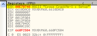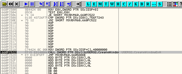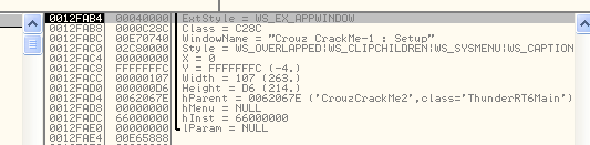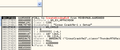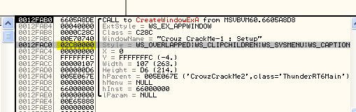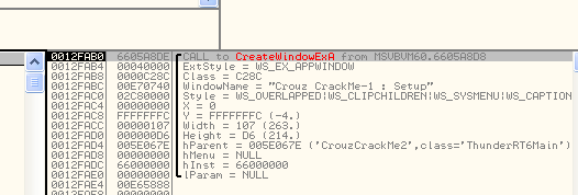 Несколько раз останавливаемся, когда создаются различные окошки и кнопки, используемые крэкми. Прибываем в то место, где создаётся наг-окно.