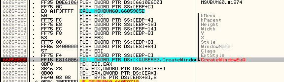 Ок, повторяем процедуру до дого момента, как создаётся окно, чтобы вмешаться в API-функцию CreateWindowsExA.