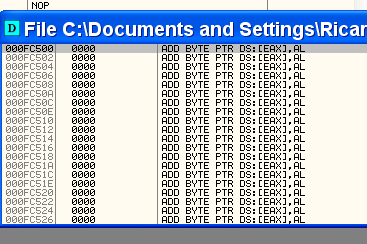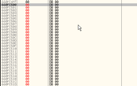 На моей машине такая область находится в конце секции кода, идите туда, где много нулей.