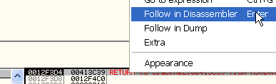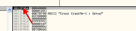 Это значит, что первая строка является ESP, вторая ESP+4 и так далее. Видим то, что нас интересует, находится в ESP+8. Перемещаем значение, находящееся там, в EAX.