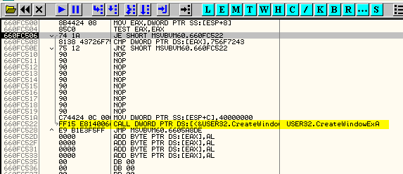 Поскольку наши попытки с JMP не решили проблему полностью, не остаётся ничего другого, как вносить изменения в VB-библиотеку. Это может стать для многих крэкеров поводом, чтобы сказать, что не подобает изменять VB-библиотеку, но это верно только тогда, когда она находится в system32 и используется всеми программами. Мы скопируем её в ту же папку, где и располагается программа, так что она будет использовать только последней, а остальные программы будут продолжать использовать библиотеку в system32.